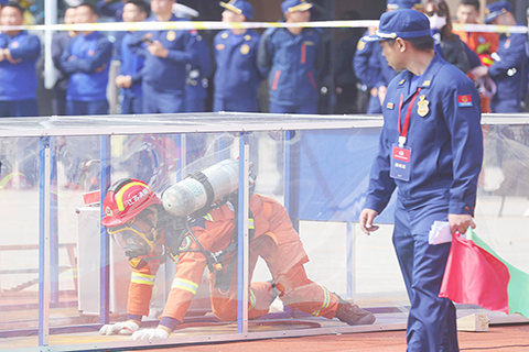 ◎ 十月十七日,南京市首屆消防行業職業技能競賽開賽,大賽為期兩天,共設置五個競賽項目十六個競賽模塊。(中新社)