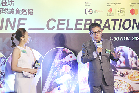 ◎ 十月二十一日,《蘭桂坊環球美食巡禮》新聞發佈會在加州大廈召開,介紹本年度《蘭桂坊環球美食巡禮》的矚目亮點,包括第二份半價餐飲優惠、LKF品酒證以及品味工作。是次美食巡禮為香港旅遊發展局「香港美酒佳餚巡禮二0二一」的一部份,蘭桂坊協會主席盛智文在發佈會上表示,希望大家可以在蘭桂坊盡情享受生活,體驗快樂。圖為香港旅遊發展局總幹事程鼎一致辭。(香港中通社記者 曹文毓攝)