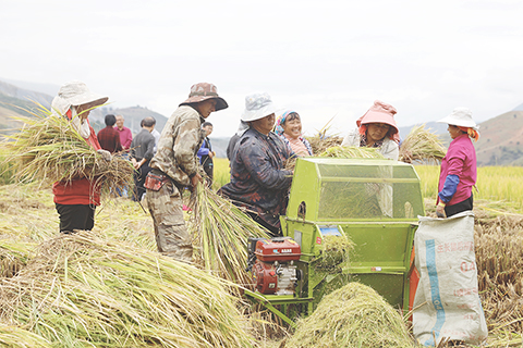 ◎ 十月二十四日,當地村民將剛收割的水稻放入機器中進行初篩。當日,雲南省玉溪市元江哈尼族彝族傣族自治縣南灑村梯田種植的三百畝多年生稻「雲大107」示範區域進行了田間測產驗收。據了解,多年生稻是水稻育種的一個創新,只需栽種一次,就可連續收割兩季或通過越冬後收割幾年,期間不需要再購種、育秧、犁田、耙田、插秧,極大地減少了勞動力投入,降低了稻農的勞動強度,並且產量保持相對穩定,突破了傳統水稻的耕作方式,實現了水稻的輕簡化生產。(中新社)