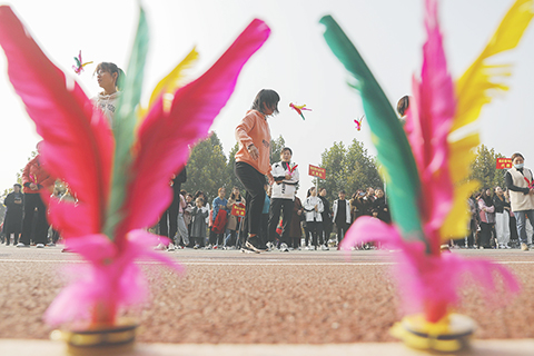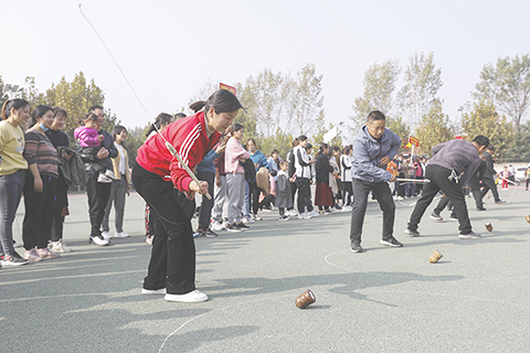 台灣圖說 春風送暖 候鳥齊飛 河南寶豐:趣味傳統競技 2021-10-26 03:30:00 一場以傳統體育、遊藝項目為主的趣味運動會在河南省寶豐縣楊莊鎮馬山根村舉行,當地居民參加了踢毽子、推鐵環、跳皮筋、打陀螺、老鷹捉小雞等項目的比賽,在趣味傳統項目中放鬆身心,收穫快樂。 新華社發 何五昌 攝
