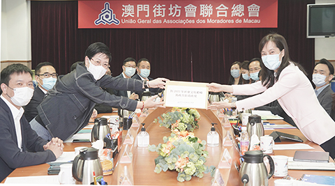 社會文化司司長歐陽瑜一行十二人拜訪街坊總會,街坊總會會長吳小麗、理事長陳家良,副會長何潤生、曾佐威、張麗珍、水超育、胡達忠、李卓君、姚嘉聰等多人接見。吳小麗在會上表示,社文司工作負擔因疫情大幅增加,對於近兩年來政府抗疫工作予以肯定。鑑於疫情期間居民生活壓力大幅增加,希望明年的民生福利不會削減,街坊總未來將會繼續支持政府,為澳門和諧穩定發展努力。