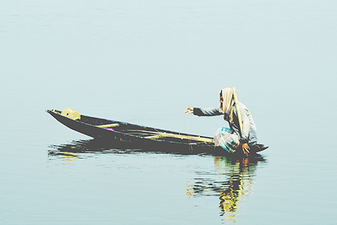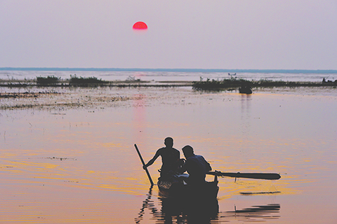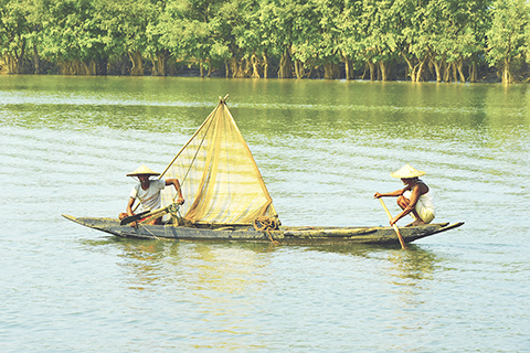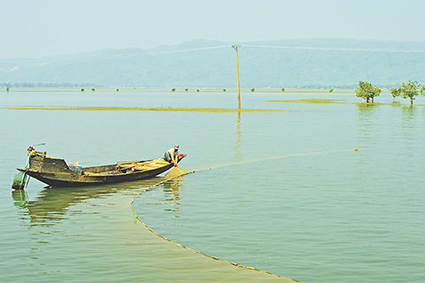 受土地鹽鹼化等因素影響,孟加拉漁民數量逐漸增加。圖為漁民在孟加拉蘇納姆甘傑一處濕地內捕魚。