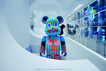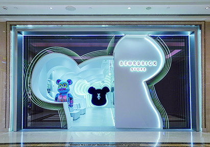 走近位於「時尚匯」購物中心東翼水晶大堂BE@RBRICK STORE,映入眼簾的便是通過燈光和特別材質打造的BE@RBRICK門廊。