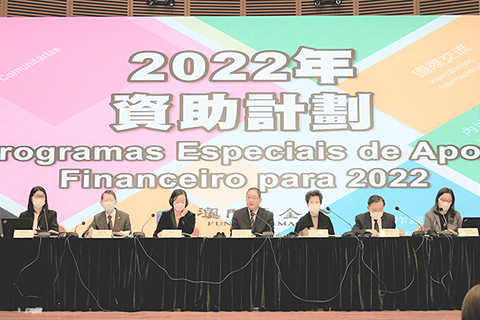 「內地、港台交流」及「國際交流」專項資助計劃:資助能推動居民深入認識祖國、加強與國際組織聯繫的項目,以配合建設粵港澳大灣區,深化中葡平台交流,更好地把握一帶一路發展機遇。