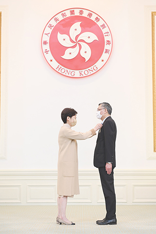 【香港中通社十一月二十日電】香港二0二一年度勳銜頒授典禮二十日起一連三日在禮賓府舉行,香港特首林鄭月娥主持今屆任期最後一次授勳典禮,逾七百人獲授勳及嘉獎,七人獲頒大紫荊勳章。