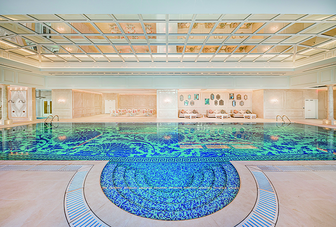 上葡京的休閒康體設施全面多元,設有健身中心及室內外游泳池,可飽覽綠茵勝境花園的歐式庭園美景。
