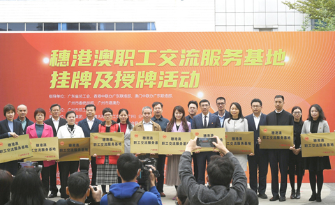 爬滿綠色植物的高架橋 銀川鳴翠湖第四屆大地藝術節開幕 兩岸企業家攜手 賦能湘台青年創新創業 偽裝財經專家騙逾億元台幣 台黑幫詐騙廿嫌犯送法辦 台去年查獲492萬件仿冒品 侵權市值9億台幣 寶島好物「上新」消博會 台商尋覓大陸市場新機遇 授牌儀式 2021-11-24 03:30:00 ◎ 十一月二十三日,「穗港澳職工交流服務基地」掛牌及授牌儀式在廣東省廣州市的陳李濟中藥博物館舉行。圖為授牌儀式。(中新社記者 陳楚紅攝)