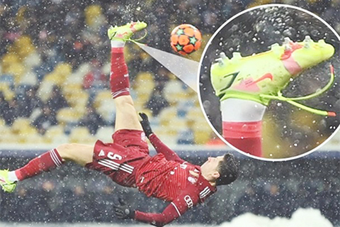 今場開波只十四分鐘,拜仁後衛柏華特遠射被擋,皮球彈上半空之際,羅拔利雲度斯基即施展倒掛抽入,完美姿勢一百分,而且鏡頭影到他射門的右腳,連鞋帶都未綁好,一樣無阻精湛射術。拜仁下半場再有京士利高文入波,基輔戴拿模尾段破蛋仍要輸一比二。◇