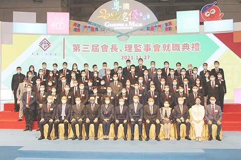 粵澳工商聯第三屆架構就職典禮昨日上午在第十三屆粵澳名優商品展現場舉行,澳門立法會主席高開賢作監誓人與各界有關人士共同見證了宣誓就職儀式。出席儀式者包括:中央駐澳聯絡辦副主任姚堅;外交部駐澳公署副特派員王冬;全國政協經濟委員會副主任、澳門中華總商會會長崔世昌;澳門特區貿促局主席劉偉明、經濟及科技發展局副局長陳子慧;全國人大代表、粵澳工商聯顧問劉藝良、蕭志偉;全國政協委員、粵澳工商聯顧問陳明金、李佳鳴;前全國政協委員、粵澳工商聯顧問何玉棠。