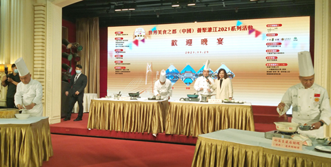 【專訪】世界美食之都(中國)薈聚濠江二0二一系列活動之歡迎晚會昨假萬豪軒舉行,並有名廚演示廚藝助興,場面熱鬧,氣氛歡愉。
