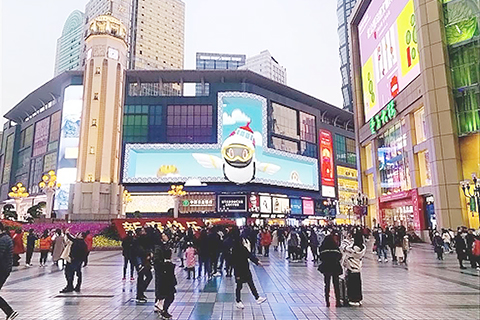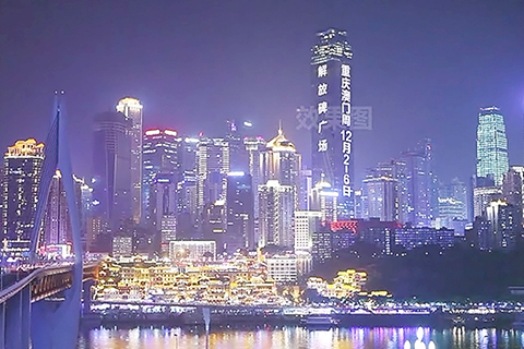 此外,解放碑廣場商業大廈、解放碑廣場金鷹財富中心及解放碑廣場重慶百貨大樓的外牆也有「旅遊+」元素的廣告視頻,而重慶環球金融中心則有「安全宜遊.魅力澳門」為主題的燈光幕牆廣告。