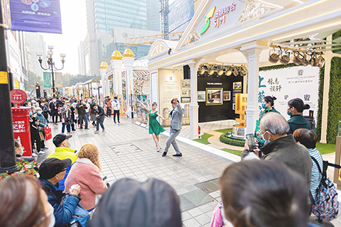 作為「重慶澳門周」路演活動的重頭戲,澳娛綜合在活動現場為重慶市民獻上舞台舞蹈表演──「成雙成對終成眷屬」。年輕舞者們身穿婚禮禮服,重現新人相遇相知相愛的溫馨過程,用舞步交織出愛的樂章,而舞台背景正是上葡京綜合度假村的婚慶場地亮點──「上葡京禮堂」。最新開業的上葡京綜合度假村,其宴會場地「上葡京禮堂」以夢幻瑰麗的風格被一眾準新人視作理想中的婚禮場地。禮堂採光充足,內飾華麗,採用純白高雅的無柱式設計,氣派雍容的露台可一覽戶外蒼翠的綠茵勝境花園和壯麗的歐式建築群,宛若身處童話中的歐洲秘境。上葡京主打的特色歐式婚禮服務,亦成為了澳門「旅遊+婚禮」的出行新亮點,為澳門旅遊增添了一份別致的浪漫氣質。