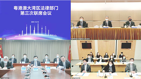 【特訊】澳門特區政府行政法務司、香港特區政府律政司及廣東省司法廳於昨日以視像方式舉行粵港澳大灣區法律部門第三次聯席會議,由廣東省司法廳主持。會議通過了《粵港澳大灣區調解員資格資歷評審標準》及《粵港澳大灣區調解員專業操守最佳準則》,並就加強大灣區的調解、仲裁合作以及共同開展法律培訓等問題進行深入討論。