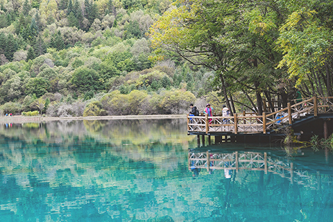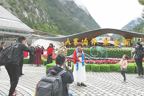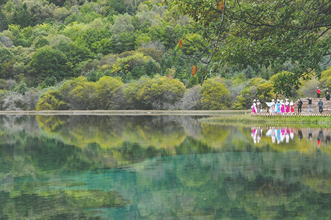9月28日,九寨溝景區全域正式恢復開放。2017年8月8日,九寨溝縣發生7.0級地震,九寨溝景區景觀受損嚴重。經過修復重建,景區累計補植補造樹木27萬株,修復、恢復生境2585畝,景區的生態系統得到有效恢復。新華社記者唐文豪惠小勇攝