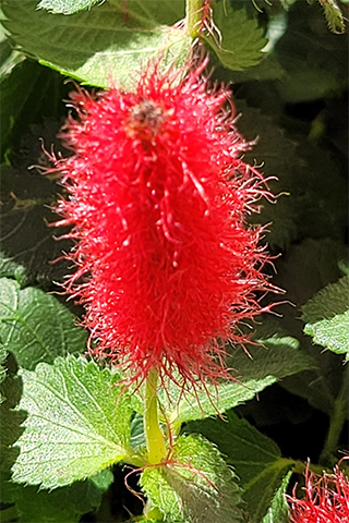貓尾草是豆科,狸尾豆屬多年生亞灌木植物;分枝少,葉片為奇數羽狀複葉,托葉長三角形,先端細長而尖,邊緣有灰白色緣毛;葉柄被灰白色短柔毛;花梗花後伸長彎曲,花萼淺杯狀,花冠紫色,莢果略被短柔毛;四至九月開花結果。