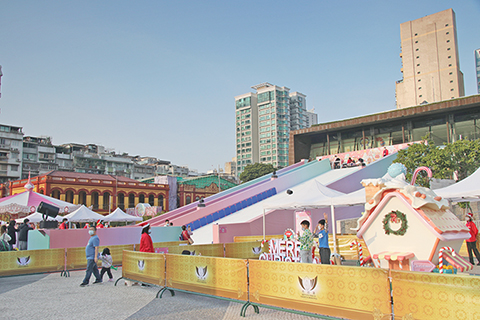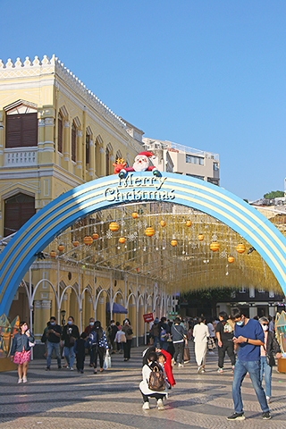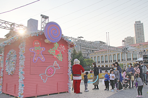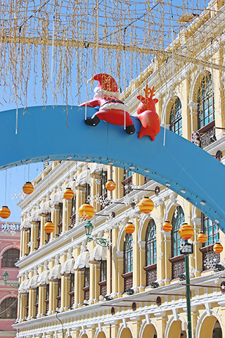聖誕節期間,澳門小城的節日氣氛很濃。特別是議事亭前地聖誕燈飾有粉色聖誕樹、白色雪人與繽紛聖誕鹿、禮盒等裝點,讓居民和遊客感受到聖誕節溫馨與歡樂。
