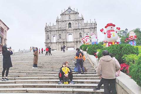 冬至下午天氣由冷雨轉為天陰 大三巴一帶遊客亦隨之增加