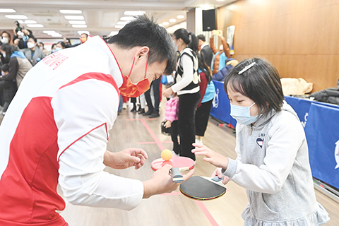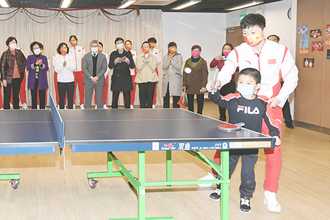 在街總石排灣家庭及社區綜合服務中心,先是許昕、汪周雨等人分組,與孩子們展開乒乓球托球傳遞跑的遊戲。隨後張靈、鍾天使等與居民家庭搭伴,一起動手包湯圓。民間歷來有「冬至大如年」的說法,湯圓是南方這個時節必不可少的美食。
