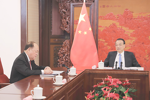 李克強總理表示,面對疫情衝擊,行政長官和特區政府採取一系列有力應對措施,在有效的防控疫情下促進經濟復甦。中央政府充份肯定行政長官和特區政府的工作,並將堅定不移繼續貫徹「一國兩制」、「澳人治澳」、高度自治的方針,全力支持行政長官帶領特區政府依法施政及完善《基本法》相關的憲制性義務和職責。