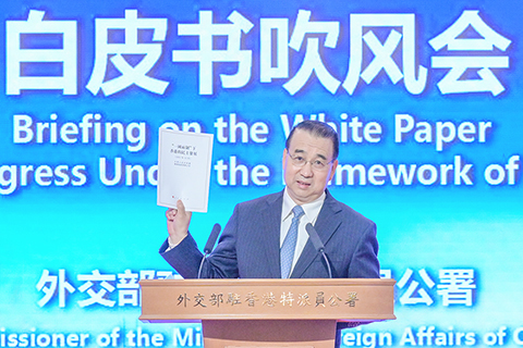 【香港中通社十二月二十二日電】十二月二十二日,外交部駐港公署舉辦《「一國兩制」下香港的民主發展》白皮書吹風會。外交部駐港公署特派員劉光源介紹,白皮書旨在對有關「一國兩制」實踐和香港民主發展的一系列重要問題正本清源,有力反擊內外反中亂港勢力對香港民主發展的干擾破壞,凝心聚力增強各界對香港民主未來發展的堅定信心。