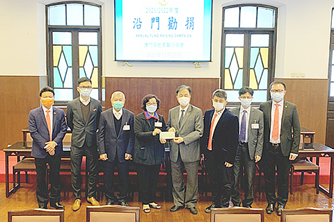 【特訊】同善堂沿門勸捐活動自十一月五日啟動,至今已開展逾一個半月,截至十二月十七日,已籌得善款逾壹仟萬元,今年度沿門勸捐仍繼續進行。近日,不同機構及團體負責人親身到該堂捐出善款,如密利拿莊園農業進出口有限公司、澳門當押業總商會、澳門娛樂博彩業中介人協會、文根建築置業有限公司、澳門自來水股份有限公司、澳門供應商聯合會、澳門房地產聯合商會、澳門電訊、澳門歸僑總會、澳門機動車入口商會、盛豐珠寶、金業同業公會等。其中,澳門房地產聯合商會會長吳在權一行六人到訪同善堂,捐出善款貳萬貳仟澳門元,由該堂副主席鄭秀明、副監事長冼志耀、值理石崇榮代表接收。