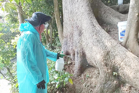 【特訊】市政署樹木養護人員持續對古樹進行巡查監察,早前已對松山市政公園一株感染褐根病的古樟樹採取施藥等護理措施,惟情況未見改善,故於本周起對該樹進行控高修剪,期間周邊將作圍封。