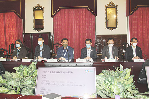 市政署管理委員林紹源主持昨日上午在市政署禮堂舉行的記者會。◇