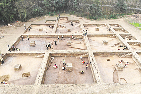 發掘現場 2022-01-22 03:31:00 ◎ 一月二十一日,在四川成都寶墩遺址發掘現場,工作人員正有序、細緻地開展相關工作,現場發掘出土了大量陶器殘片和石器殘件。寶墩遺址于一九九五年發現,是中國長江上游地區時代最早、面積最大的史前城址,是成都平原上人類第一次大規模定居生活的地點。(中新社)