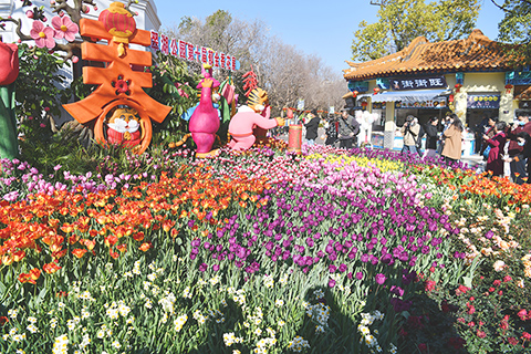 ◎ 二月十日,昆明翠湖公園盛開的鬱金香。近日,昆明市陽光明媚,氣候宜人,眾多市民來到戶外踏春賞花,「觸摸」春天。(中新社)