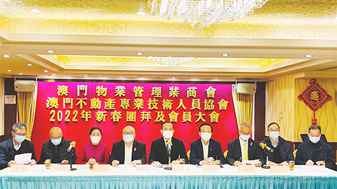 【特訊】澳門物業管理業商會、澳門不動產管理專業技術人員協會於十六日假聯邦酒樓召開兩會會員大會及舉行新春團拜,近百名會員代表歡聚一堂。大會選出常務副會長劉雅煌擔任大會主席、周建平擔任秘書,楊永泰會長主持會議。
