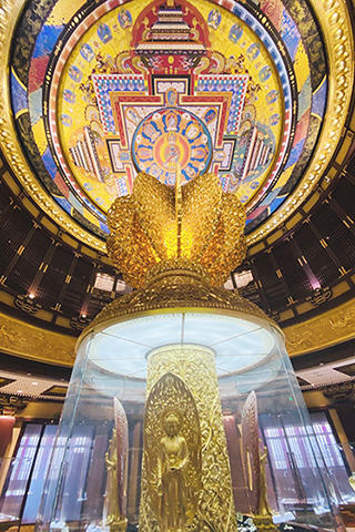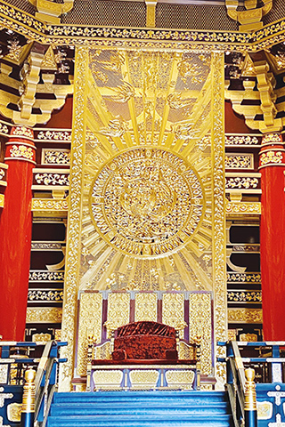 從側門進入明堂,這個金光閃閃、富麗堂皇的大殿就是古代帝王用於佈政、祭祀之地;最注目的當然是大殿中央朱紅的鳳椅,其背倚金黃巨大的鳳凰屏風,鳳椅前方走下數個台階是一個平台,據說是大臣覲見的地方,再往下數個台階、又是一個更大的平台,這是百官覲見的地方。適逢表演時段,有幸參觀了「武則天召見群臣的情景」,百官叩於殿前、女皇端坐在世人敬仰的鳳椅上,碩大的大殿內依然顯得空蕩、壓迫感撲面而來,難怪官員上朝面聖會緊張,身處這個環境,相信人們也難以放鬆。這裡多個展廳分別展示武則天執政期間的各種政策與相關事宜,第一次這麼近距離接近這位女皇帝,其勸農桑、薄賦徭、開創武舉考試、廣開言路、重用寒門,尤其允許女子參加科舉考試,這是一大創舉!無愧被譽為承「貞觀之治」、啟「開元盛世」的一代君主。