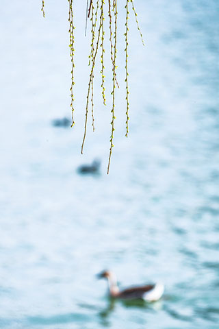 ◎ 這是三月八日在河南商丘日月湖景區拍攝的吐出嫩芽的垂柳。新華社發(李恒 攝)