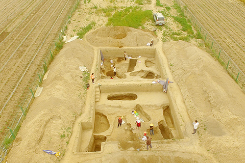 ◎ 三月十二日,記者從中國社會科學院考古研究所豐鎬隊獲悉,考古人員在位於陝西西安的豐鎬遺址大原村西南發現並發掘了最大的一處西周製陶遺址,出土陶拍、陶墊、石刀、蚌刀等四百餘件與製陶相關的小件器物。圖為二0二一年五月二十五日拍攝的T2635和T2735全景。(無人機照片)(中新社發 中國社會科學院考古研究所豐鎬隊供圖)
