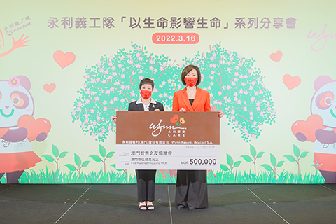 永利長久以來一直積極投入慈善事業,幫助社會上更多有需要人。特別是在疫情期間熱心公益、奉獻社會的情懷更為濃厚,本月十六日於永利皇宮舉辦由該會會長劉玫瑰主講「以生命影響生命」的勵志分享會,出席者包括永利澳門有限公司副主席兼執行董事陳志玲、永利澳門人力資源部副總裁兼永利義工隊隊長劉德明、永利澳門及永利皇宮社區及政府關係助理副總裁李勁源、會方理事長都廣生及一眾永利義工與會方家庭成員等逾百人。在分享會中義工對該會成員進行深切慰問與交流。同時,於活動上由永利澳門有限公司副主席兼執行董事陳志玲將有關支票捐贈,並由會長劉玫瑰代表接受。隨後義工更陪同成員乘坐觀光纜車,欣賞噴泉表演,義工們熱情送上祝福鼓勵,共度一個充滿歡樂和笑聲的美好時光。◇