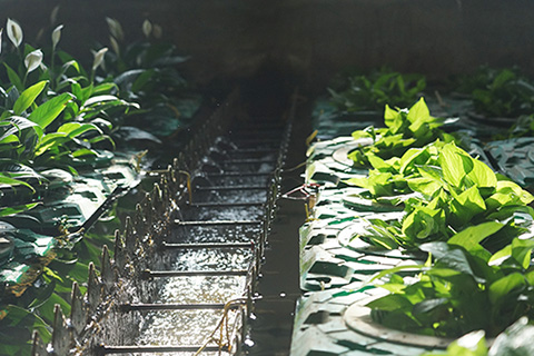 初春時分,在青海西寧市第一再生水廠車間內,潺潺流水自管道中流出,水池內的綠蘿在「貪婪」地吸收水分,綠色的葉片在陽光照射下熠熠生輝。