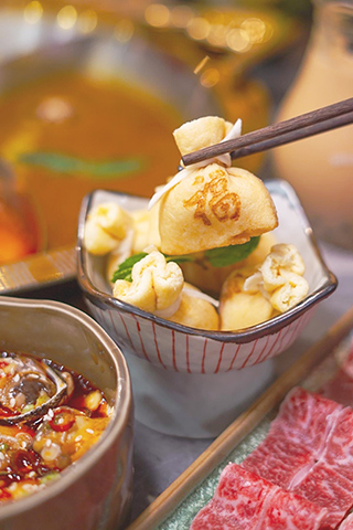 紫菜鈴鈴卷︰有別於一般的響鈴,這款有海苔藏身,除了豆香外還有一份甘鮮的甜味,涮在湯底一至兩秒,讓湯汁精華鎖上,下一秒就是享受一口爆汁的剎那!