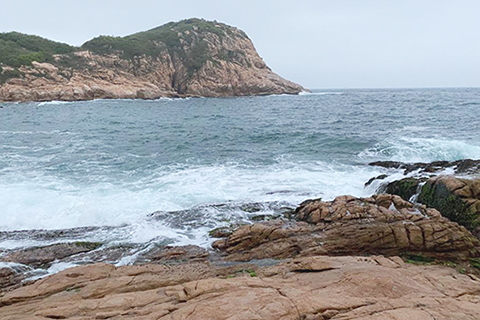 在浩瀚煙波裏,看海聽浪,都是一種愜意舒適的樂趣,再留意石澳石灘,發覺香港的確是有好多靚山、靚海、同埋靚石頭,近海的石頭一片片好像魚麟一樣,石頭的顏色是粉紅色的,有些石頭大到兩層樓那般高,爬上石頭頂拍張照也不是很困難的事,還看見很多青少年在地下鋪上軟墊,在筆直的大石頭練習攀石。