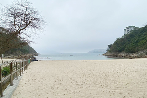 這次原意是前往大潭的龜背灣沙灘,可惜到達時看見圍封,才想起於數天前(三月十七日),特區政府已經向市民宣布因疫情嚴峻,需再加強管制,關閉所有泳灘,女兒好奇繼續越過籬笆,經石級走下泳灘,我唯有緊隨其後,到達泳灘時,當然是空無一人,拍了一兩張照片,已有職員走出來,勸喻我們返回去。