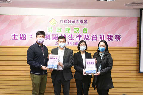 【特訊】為了加深社會對粵澳深度合作區的認識,共建好家園協會於日前在婦聯綜合服務大樓三樓舉行好家園時政座談會,主題為「琴澳兩地法律及會計稅務」。座談會由立法議員、共建好家園協會理事長黃潔貞主持,邀請橫琴粵澳深度合作區法律事務局代理局長鍾頴儀、財政局代理副局長郭日海擔任主講嘉賓,與會員和市民共同探討深合區法制建設及稅務優惠等。主辦方期望藉此提升社會對深合區的認知,吸納居民聲音和意見,為推動深合區建設建言獻策,促進深合區繁榮穩定發展。