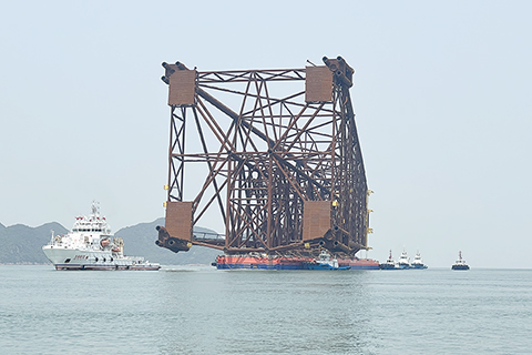 在珠海海事護航下 亞洲第一深水導管架出港
