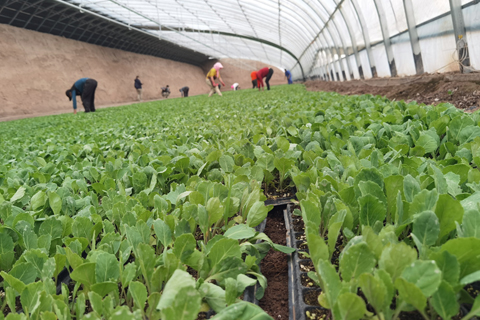 ◎ 粵港澳大灣區「菜籃子」工程體系在甘肅河西走廊多地的格局已立、產業閉環初具、社會效益漸顯,消費者還可溯源。地處戈壁和沙漠,河西走廊嚴酷的自然條件反而為農業生產帶來得天獨厚的優勢。由於長期乾旱少雨,晝夜溫差大,種植蔬菜病蟲害少、品質高。包括金昌、武威、張掖、酒泉在內的多個地區近年來依託此優勢打造蔬菜特色產業,構建了現代蔬菜產業體系,戈壁蔬菜端上粵港澳大灣區的餐桌。圖為四月十五日,甘肅金昌市金川區一處溫室大棚裡,綠油油的蔬菜苗長勢喜人。(中新社記者 馮志軍 攝)
