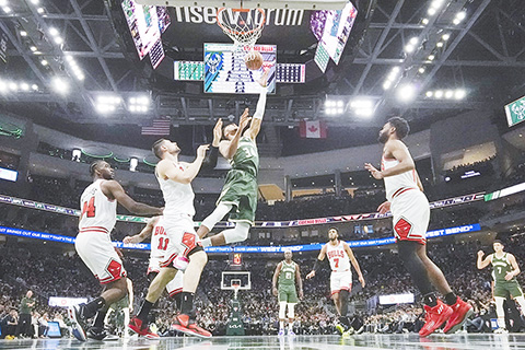 【新華社華盛頓4月27日電】2021-2022賽季美職籃(NBA)季後賽首輪27日再戰兩場,衛冕冠軍公鹿隊主場迎戰公牛,以116:100輕巧取勝,成功晉級季後賽第二輪。勇士與金塊激烈鏖戰,最終以102:98分再下一城,憑藉4:1的大比分順利拿到西部賽區第一張半決賽入場券。
