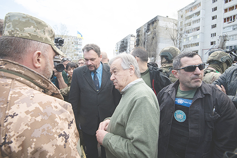古特雷斯是二十七日結束對俄羅斯的訪問後抵達烏克蘭的。普京二十六日在俄首都莫斯科與古特雷斯舉行會談時表示,俄方不會拒絕與烏克蘭進行談判,並希望通過外交途徑達成協議。