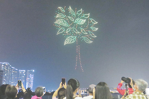 首演後,「二0二二翱遊澳門無人機表演盛會」接續於今日晚上八時三十分及九時四十五分、七日晚上八時正和九時三十分和八日晚上八時正和九時三十分在南灣湖上演,每場演出約十五分鐘,配合燈光和音樂等元素,豐富居民及旅客夜間娛樂體驗,深化「旅遊+」跨界融合。◇