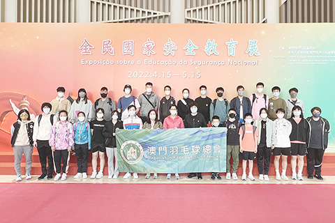 【特訊】五月二日澳門羽毛球總會理事長馬嘉美帶領理事、職員及集訓隊隊員一行三十人,走進由澳門特別行政區政府與中央人民政府駐澳門特別行政區聯絡辦公室合辦的「第七個全民國家安全教育展」。