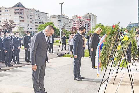 【香港中通社五月七日電】當地時間五月七日上午,中國駐塞爾維亞使館在中國駐南聯盟(塞爾維亞和黑山)使館舊址前舉行憑吊儀式,悼念北約轟炸中犧牲的三名中國記者。