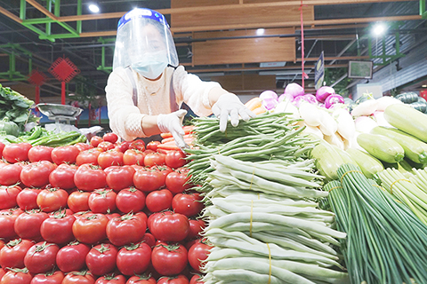 西寧市農貿市場物資儲備充足 2022-05-14 03:30:00 ◎ 五月十三日,在西寧市莫家街綜合農貿市場內,商家正在擺放蔬菜。自五月十日一時起,西寧市全域採取從嚴從緊的防控措施,並進行多輪核酸檢測。該市場在每日核酸檢測結束後,于十四時起開放營業,商家物資儲備充足,價格穩定,保障市民日常生活需求。(中新社)