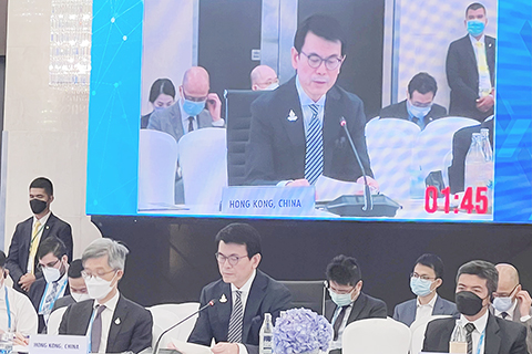 邱騰華特別談及數碼科技具備全方位重新聯繫亞太地區的潛力,是協助經濟長遠增長和全面復甦的工具。他表示,香港正籌備成立「數字化經濟發展委員會」,以加快數字化經濟進程,並呼籲成員經濟體充份利用數碼科技,以減低貿易成本、促進投資和恢復跨境往來。