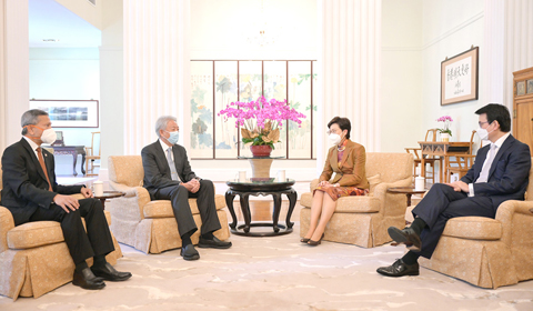 林鄭月娥歡迎二人訪港,並表示新加坡是她二0一七年上任後首次出訪的目的地,足證香港與新加坡的密切關係,她很高興能在她即將完成香港特區行政長官五年任期之際與兩位部長會面。