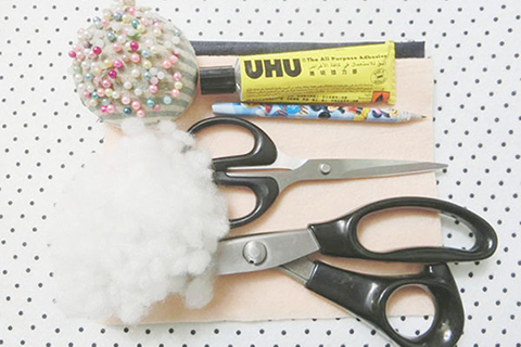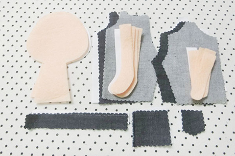 (一)先用珠針將全部紙樣固定在絨布上,再沿圖案形狀裁剪好。